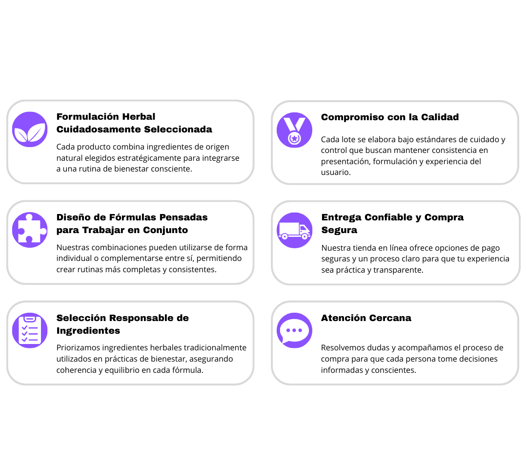 Nuestra línea herbal acompaña tu rutina como parte de un estilo de vida consciente y saludable.